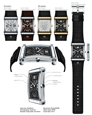 I created and developed a new line for Aigner watch collection, a refresh could keep the recognized visual elements that threw off only the 'A' logo onto the watch head.